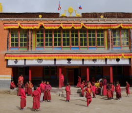 Der Buddhismus, oft mit Einbeziehung schamanistischer Götter und Rituale findet sich überall auf dem Dach der Welt – mit Manimauern, Stupas, Tempeln und Klöstern . Die Frömmigkeit der Bewohner ist beeindruckend. Kinder werden häufig im Kloster ausgebildet, leben dort im Internat .