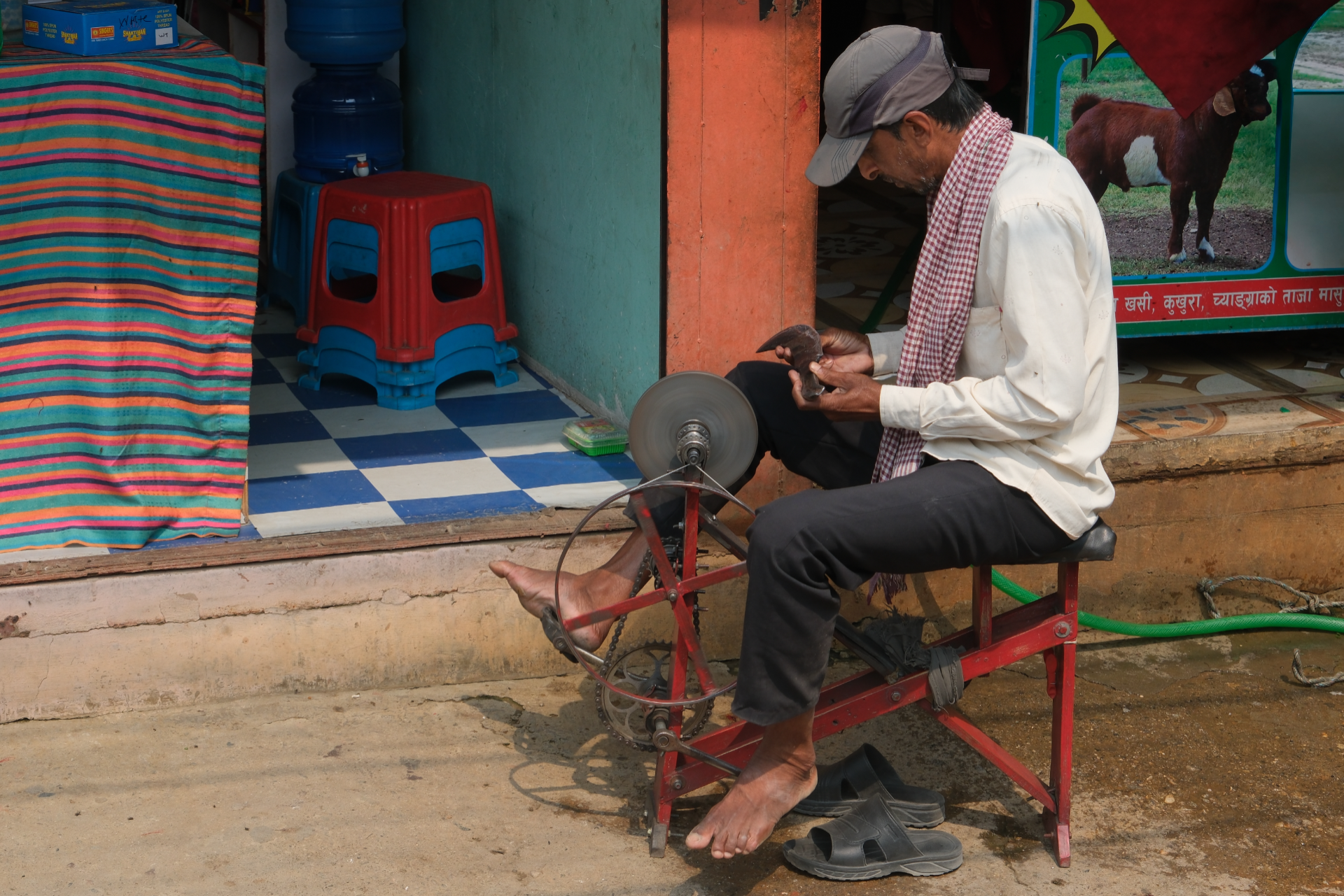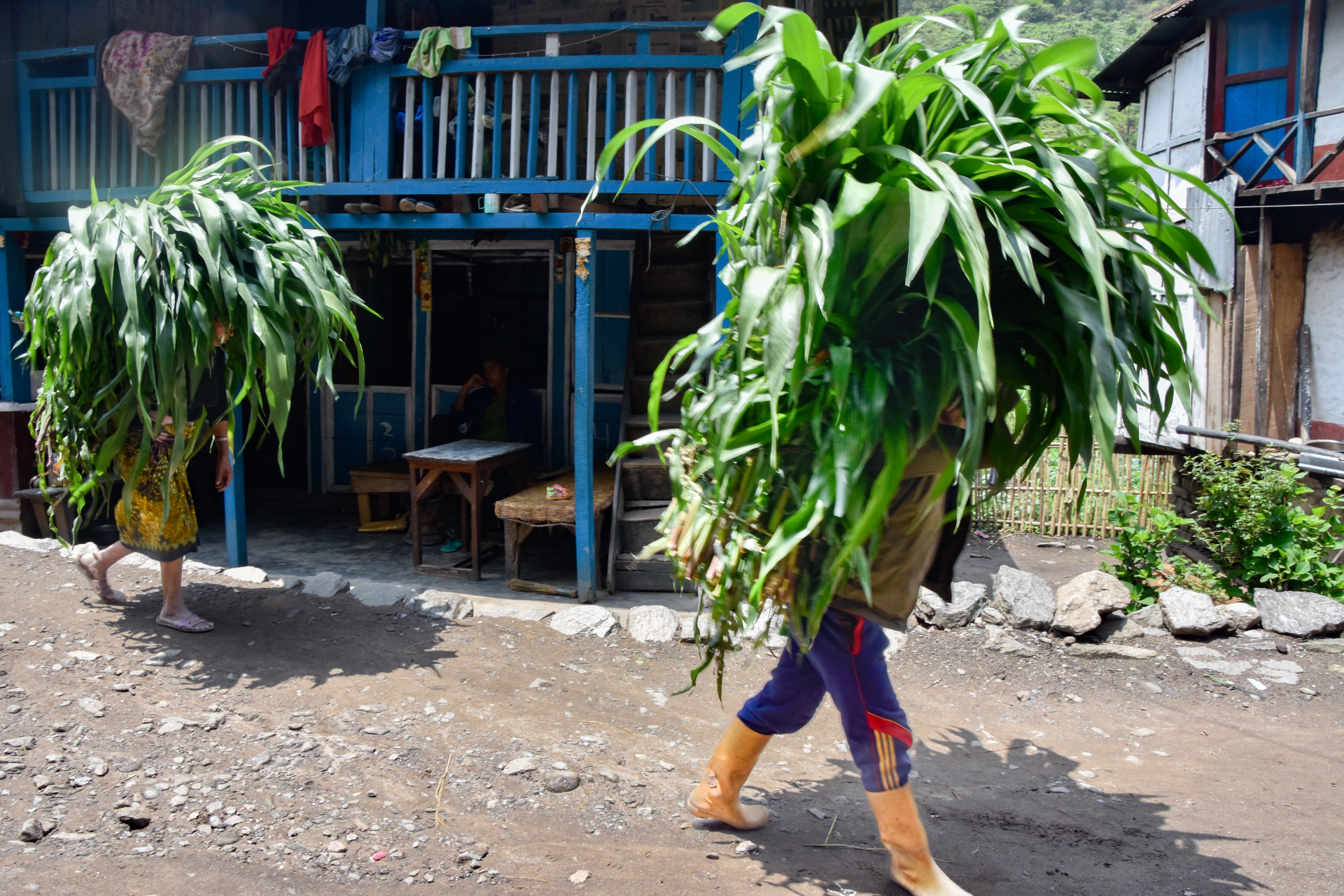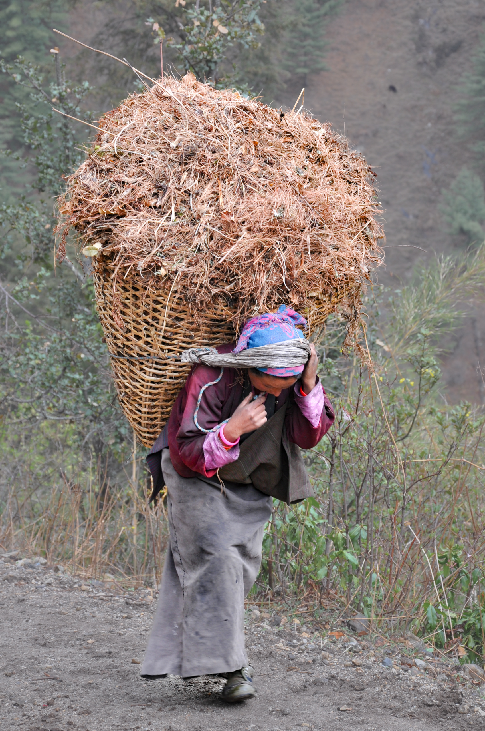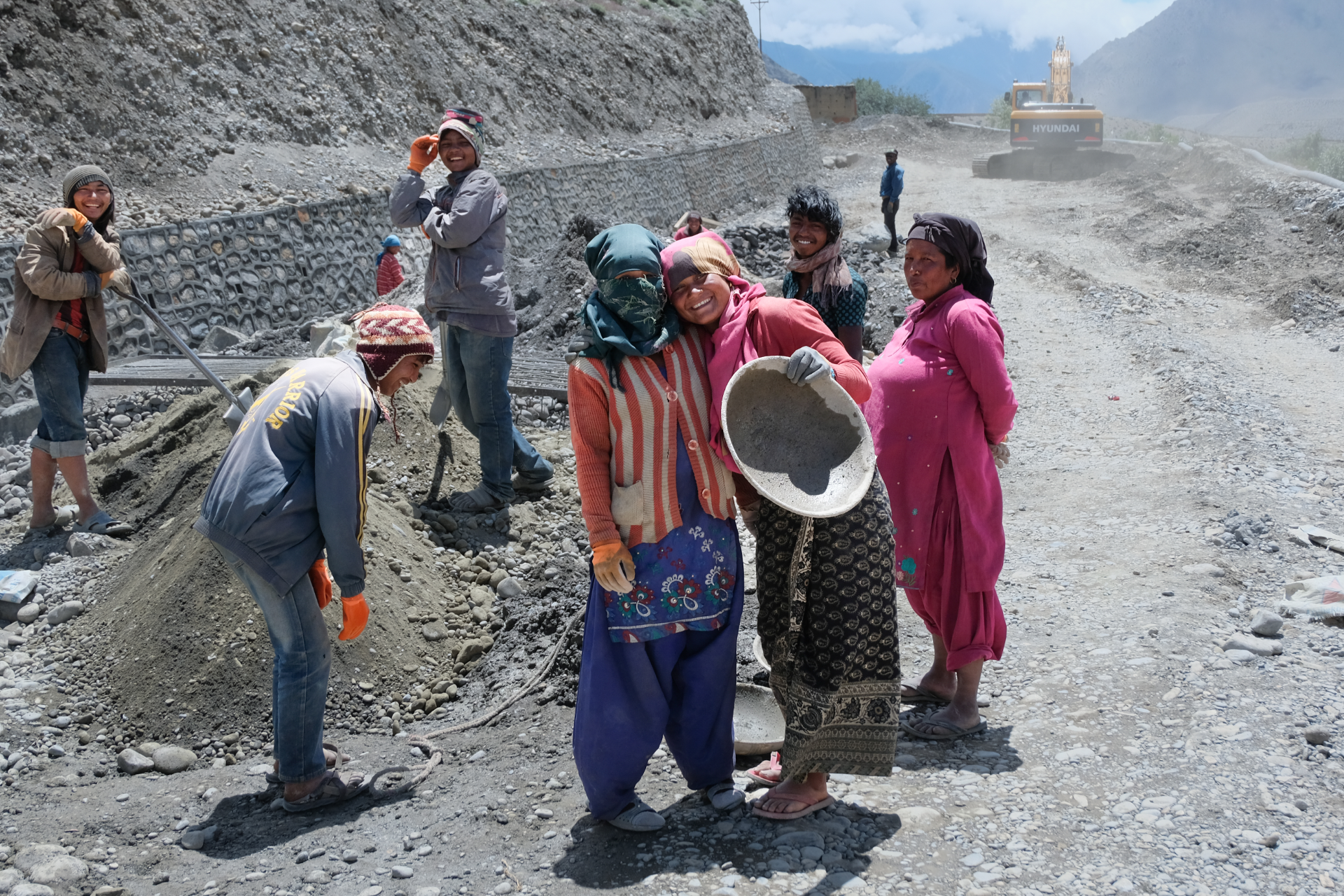 Die Arbeitsbedingungen sind häufig sehr hart – wie Handarbeit beim Straßenbau und Transport schwerer Lasten auf dem Rücken von Mensch , Yak oder Mulis, die Arbeitsgeräte erinnern oft an längst vergangene Zeiten unserer Großeltern.