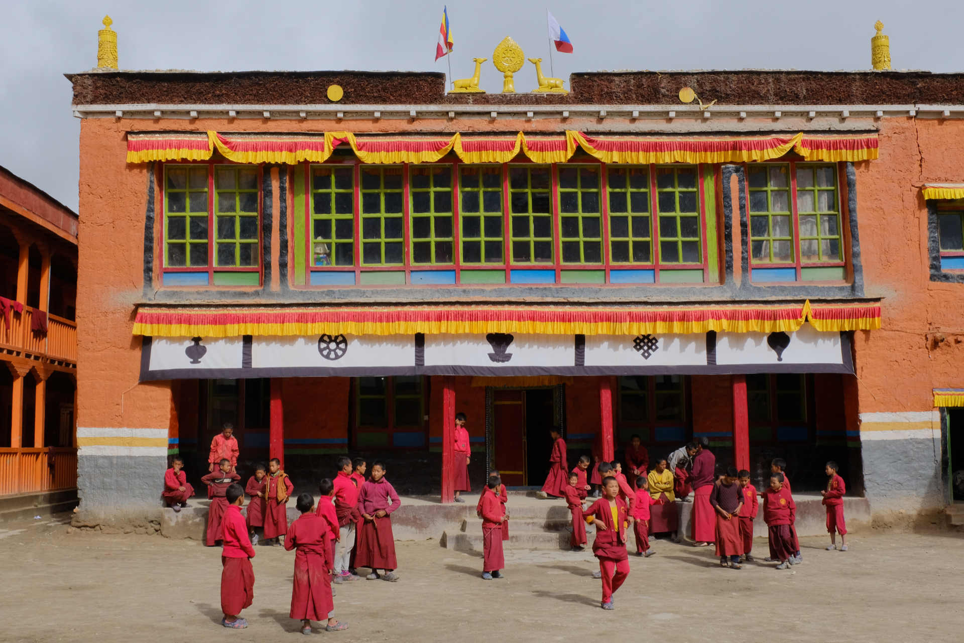 Der Buddhismus, oft mit Einbeziehung schamanistischer Götter und Rituale findet sich überall auf dem Dach der Welt – mit Manimauern, Stupas, Tempeln und Klöstern . Die Frömmigkeit der Bewohner ist beeindruckend. Kinder werden häufig im Kloster ausgebildet, leben dort im Internat .